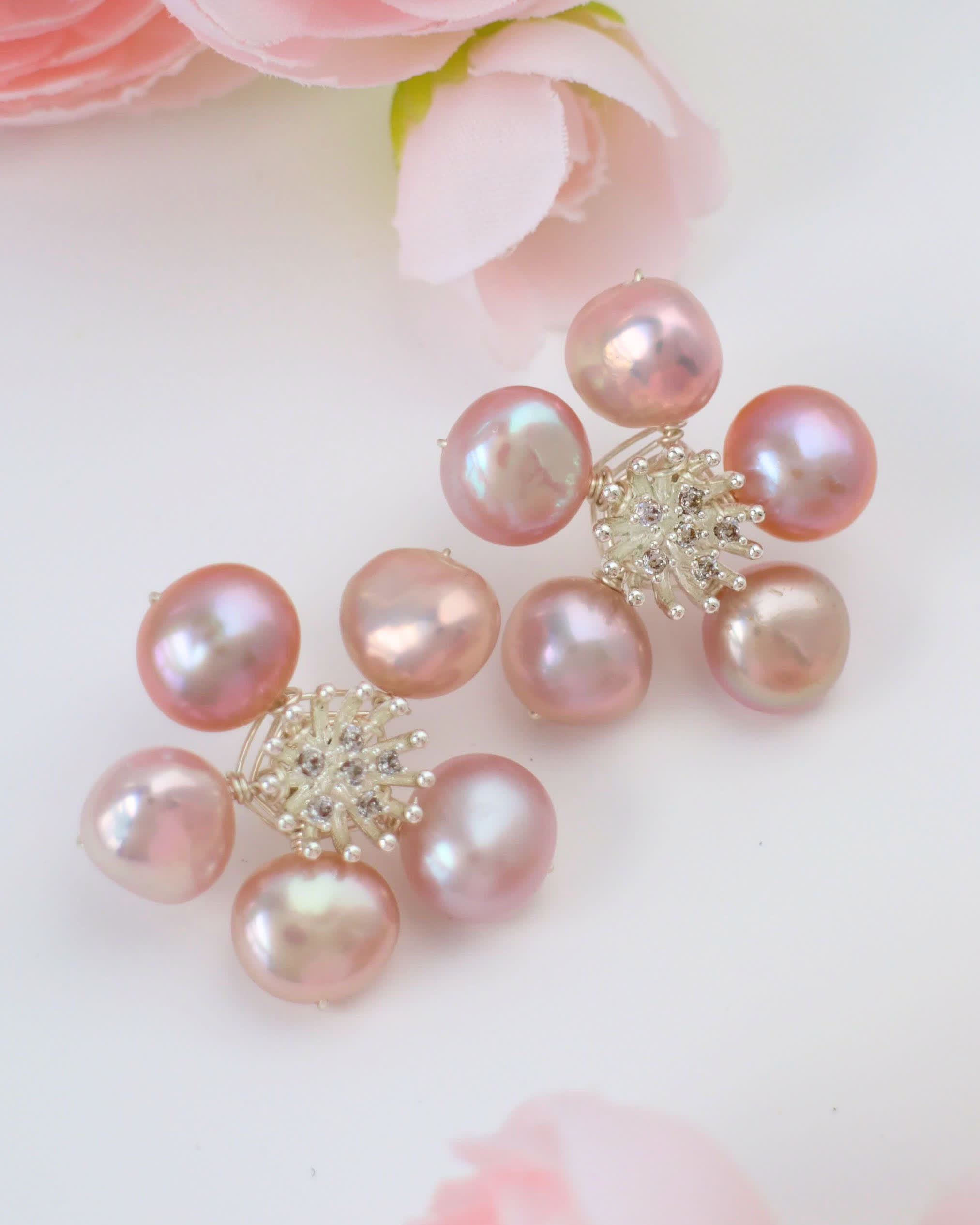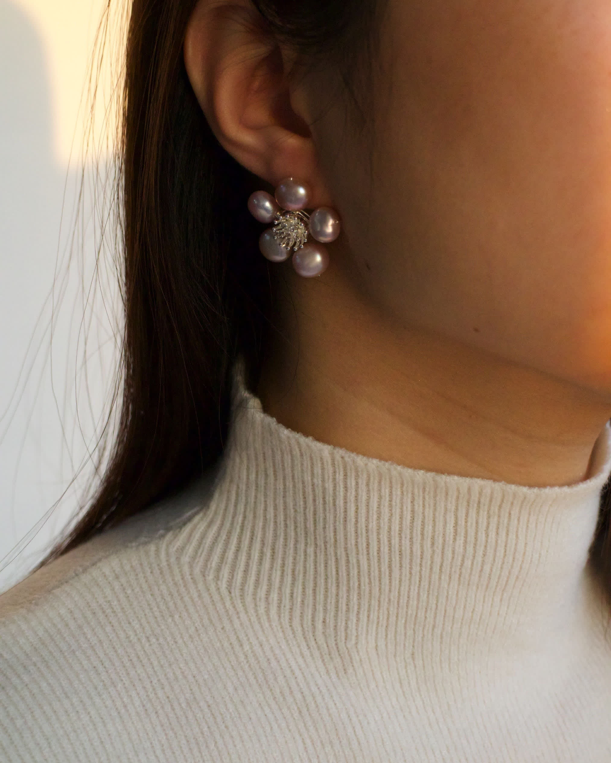Elevate your everyday style with our Fleur Pearl Earrings. This effortlessly elegant design features a soft bloom of lustrous pearls, hand-set in sterling silver for lasting quality and comfort. The perfect minimalist touch for any occasion.