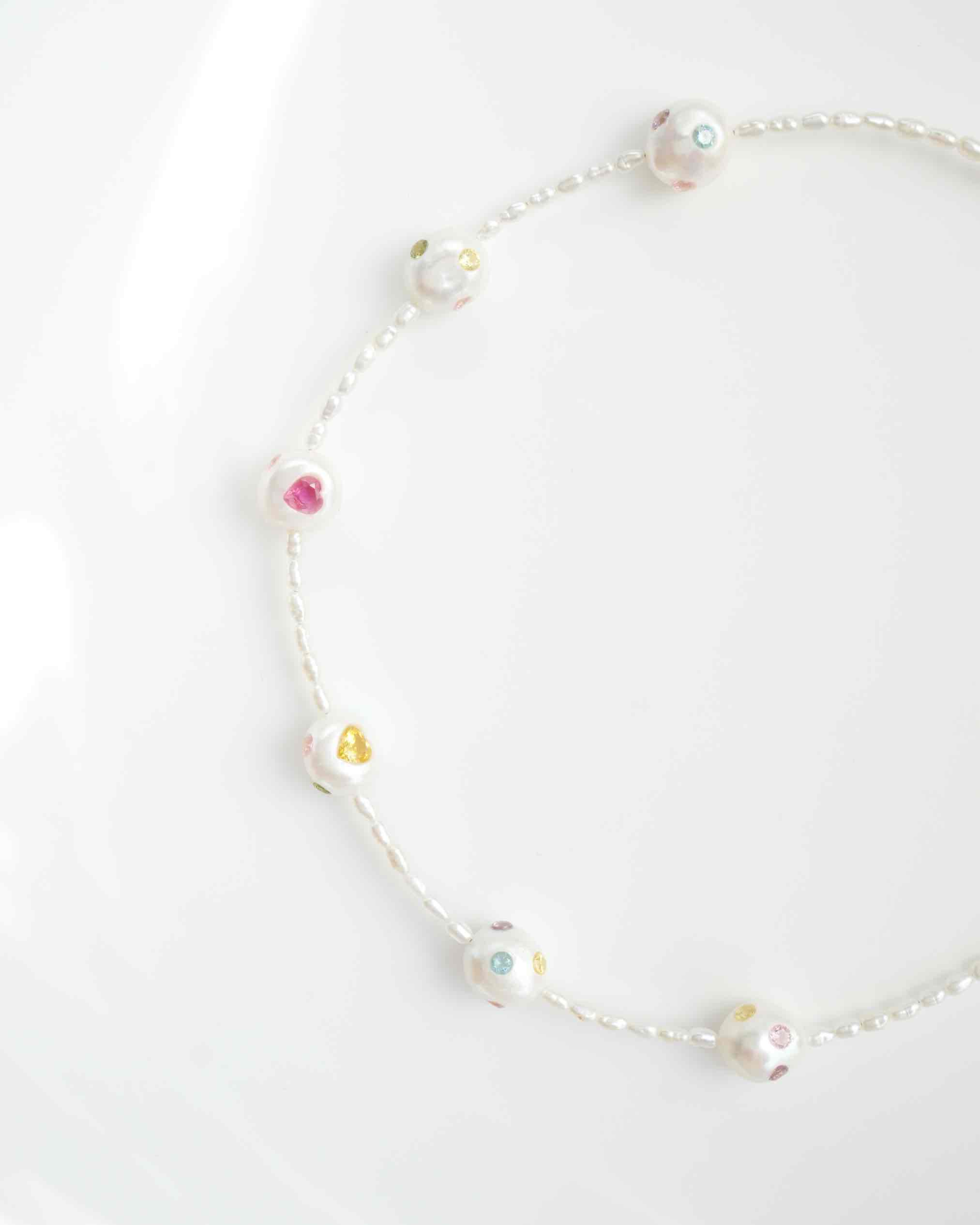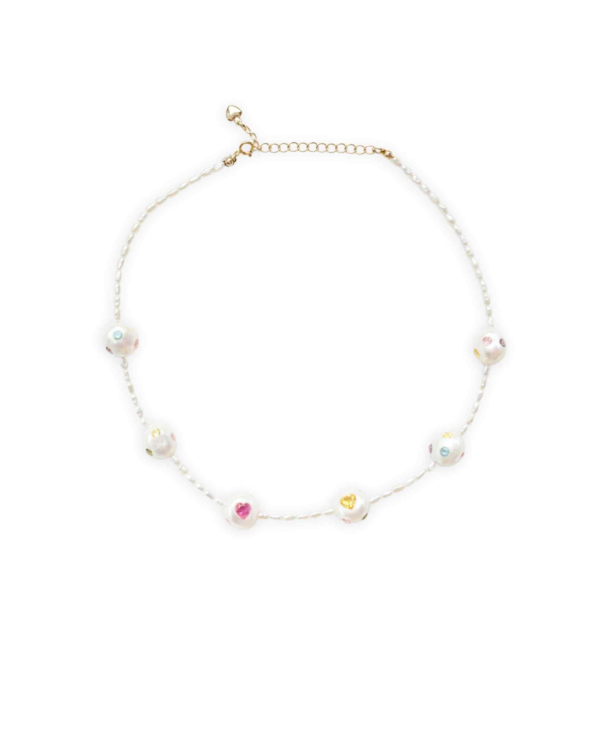 The Joyful Baroque Pearl Choker features handcrafted freshwater pearls paired with vibrant 5A zirconia in a playful, dopamine-inspired design. Adjustable and versatile, it’s perfect for everyday wear or layering with a touch of sweet elegance!