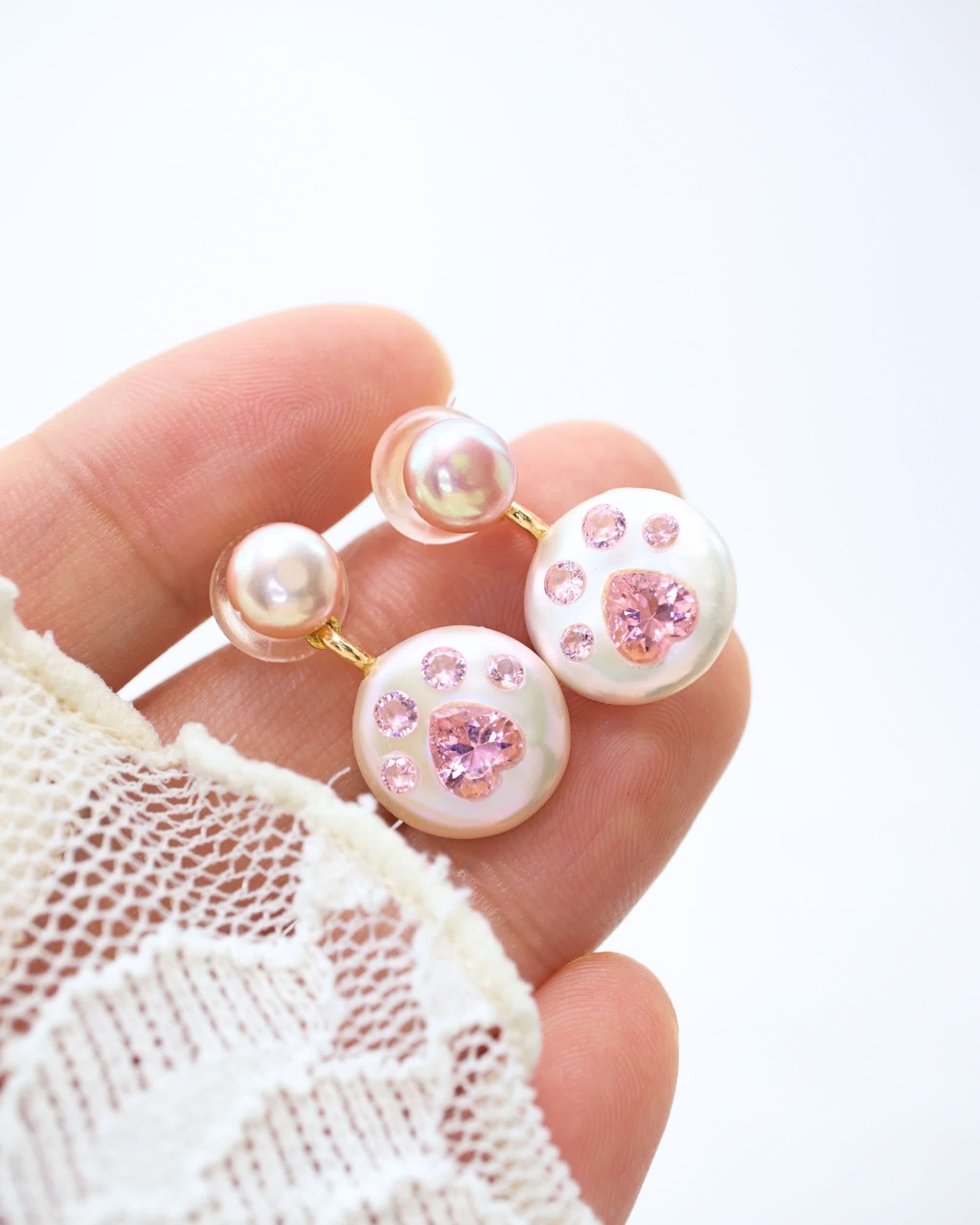 - Adorable cat-claw-shaped pink zircon stones add a fun, whimsical touch, making these earrings a standout for cute, eye-catching charm.Adorable cat-claw-shaped pink zircon stones add a fun, whimsical touch, making these earrings a standout for cute, eye-catching charm.