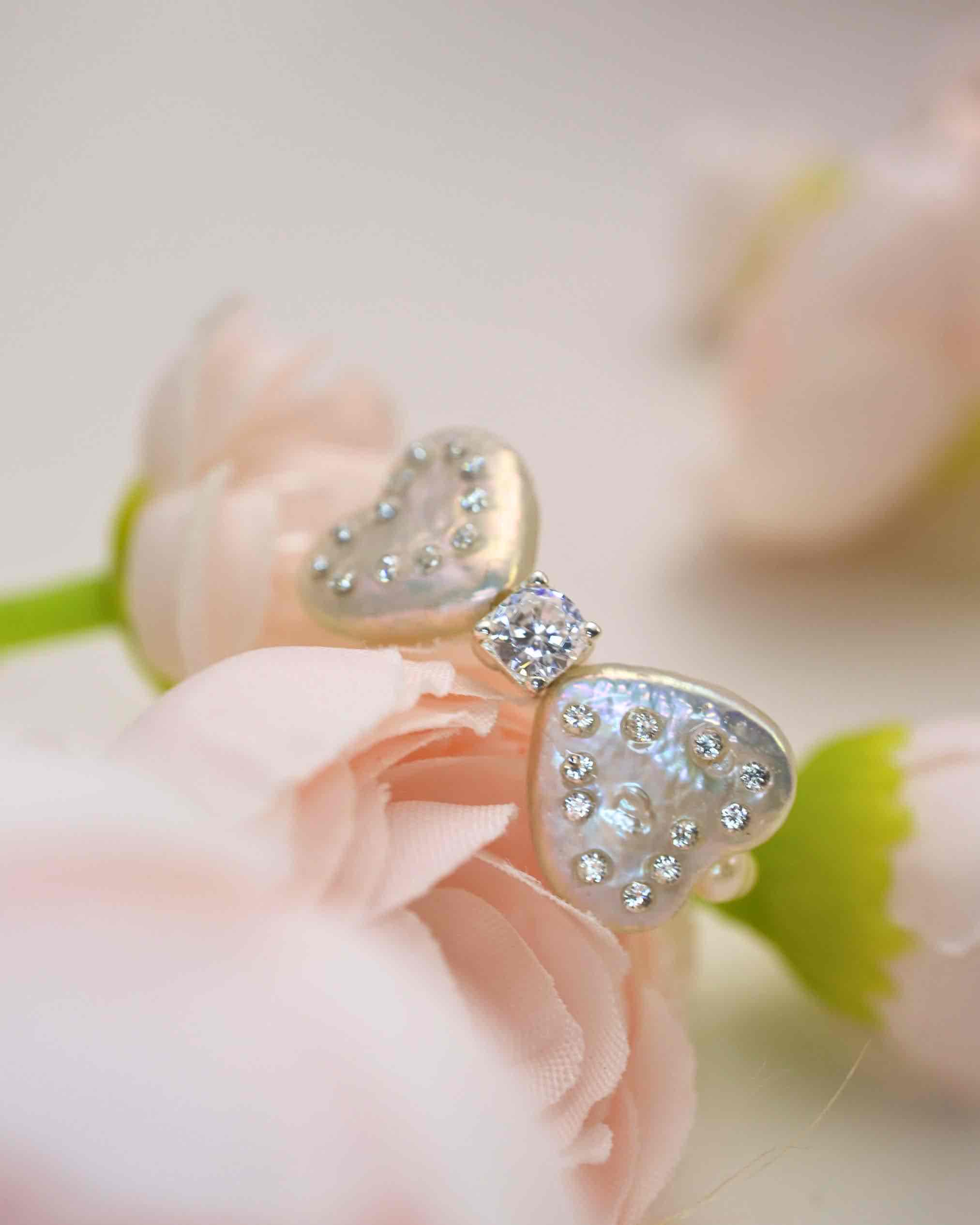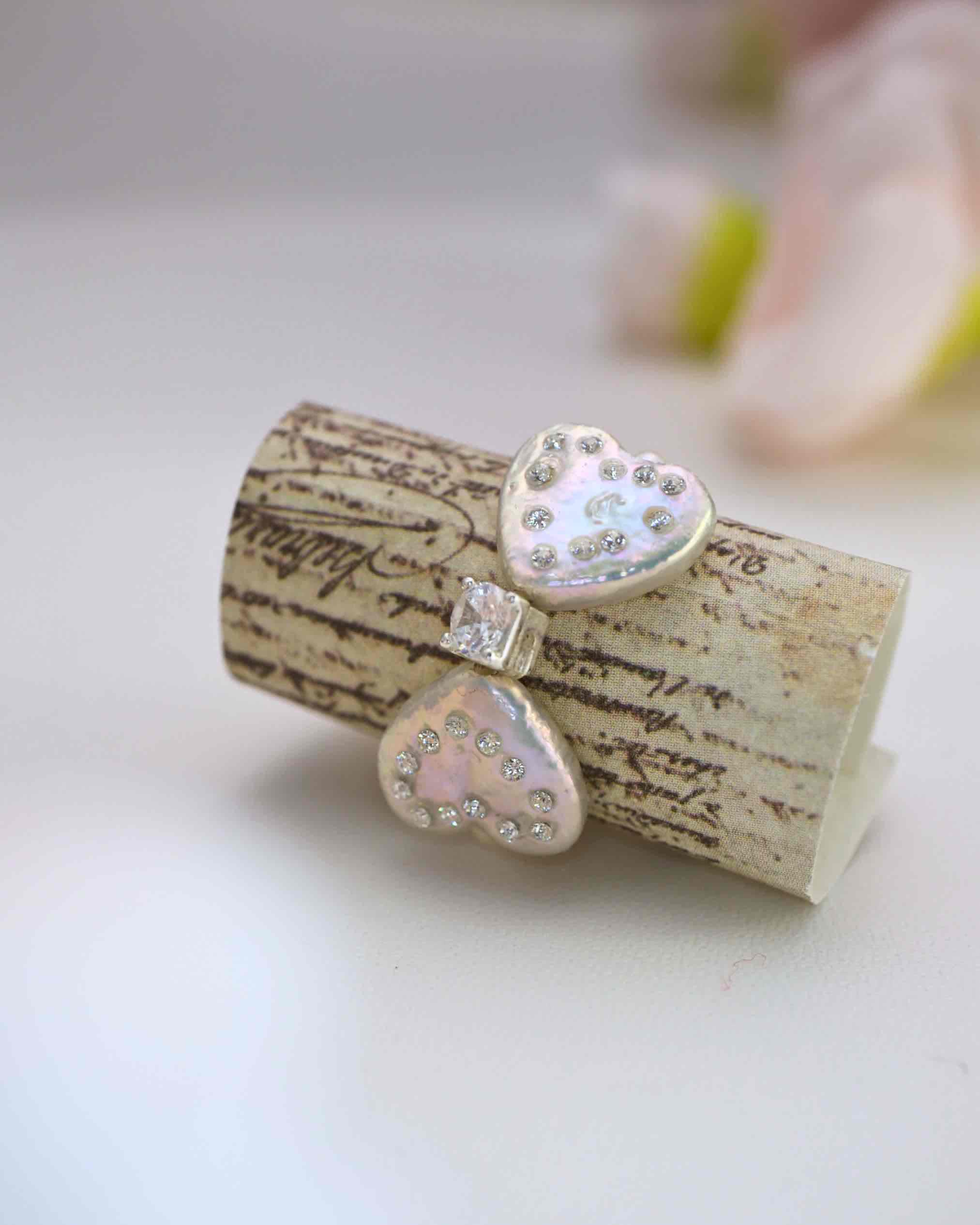Dazzle with the Sweetheart Bow Sparkle Ring! Handcrafted with love, this ring shines with two heart-shaped baroque pearls tied into a sweet bow, accented by sparkling white zircon edges and a bold 5A zircon center. Its stretchy pearl band ensures a comfy fit, sealed with a protective topcoat to keep every sparkle secure. A glittery, romantic must-have!