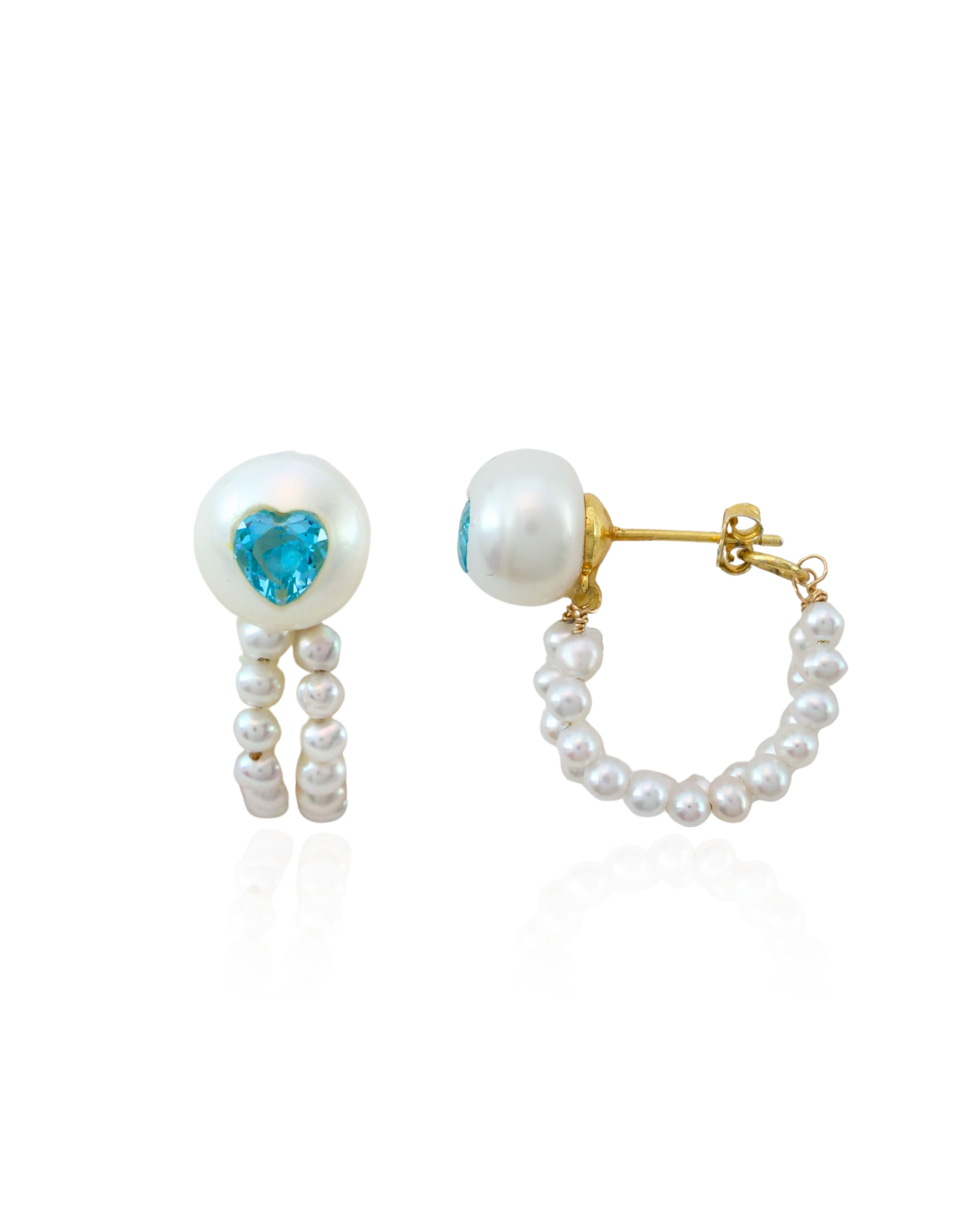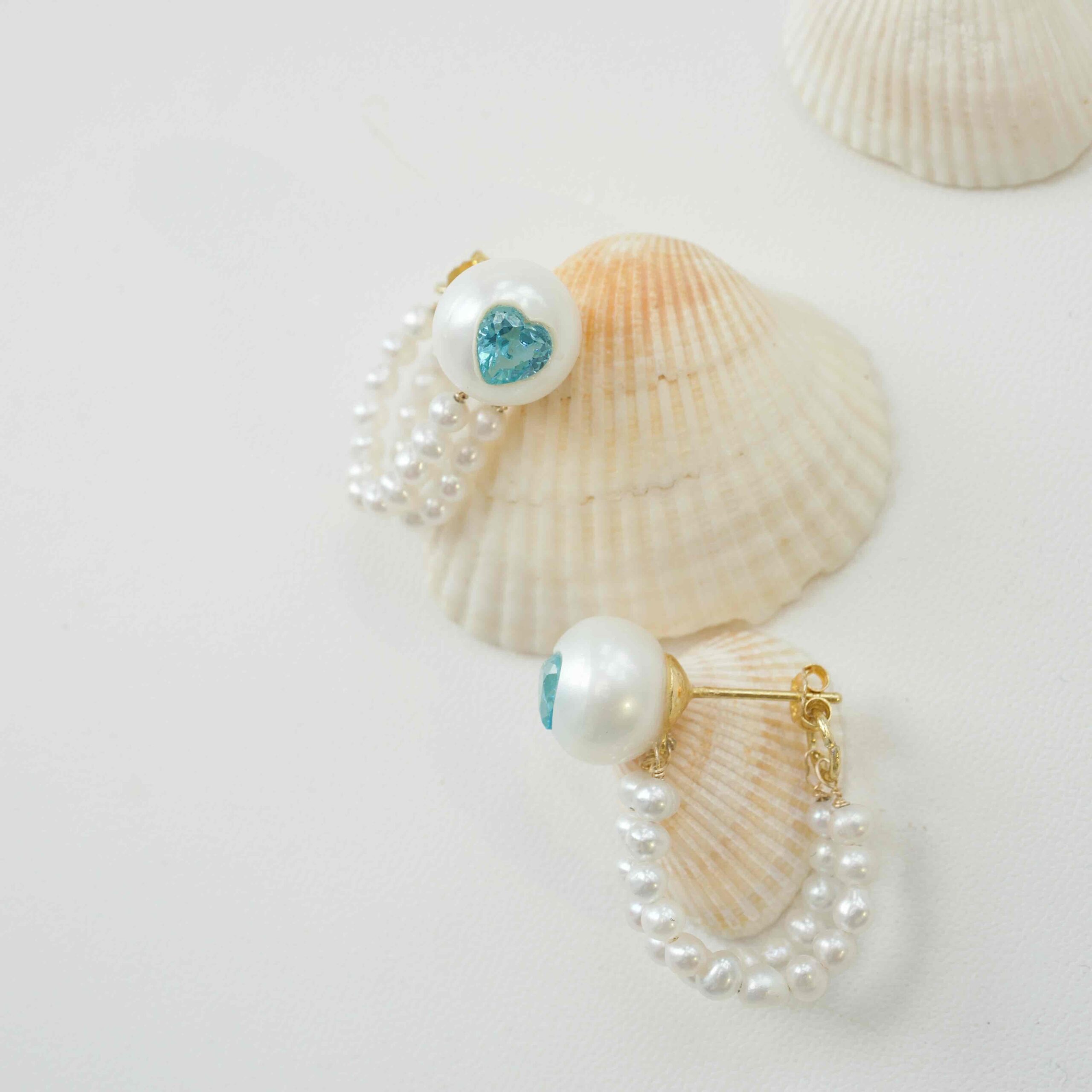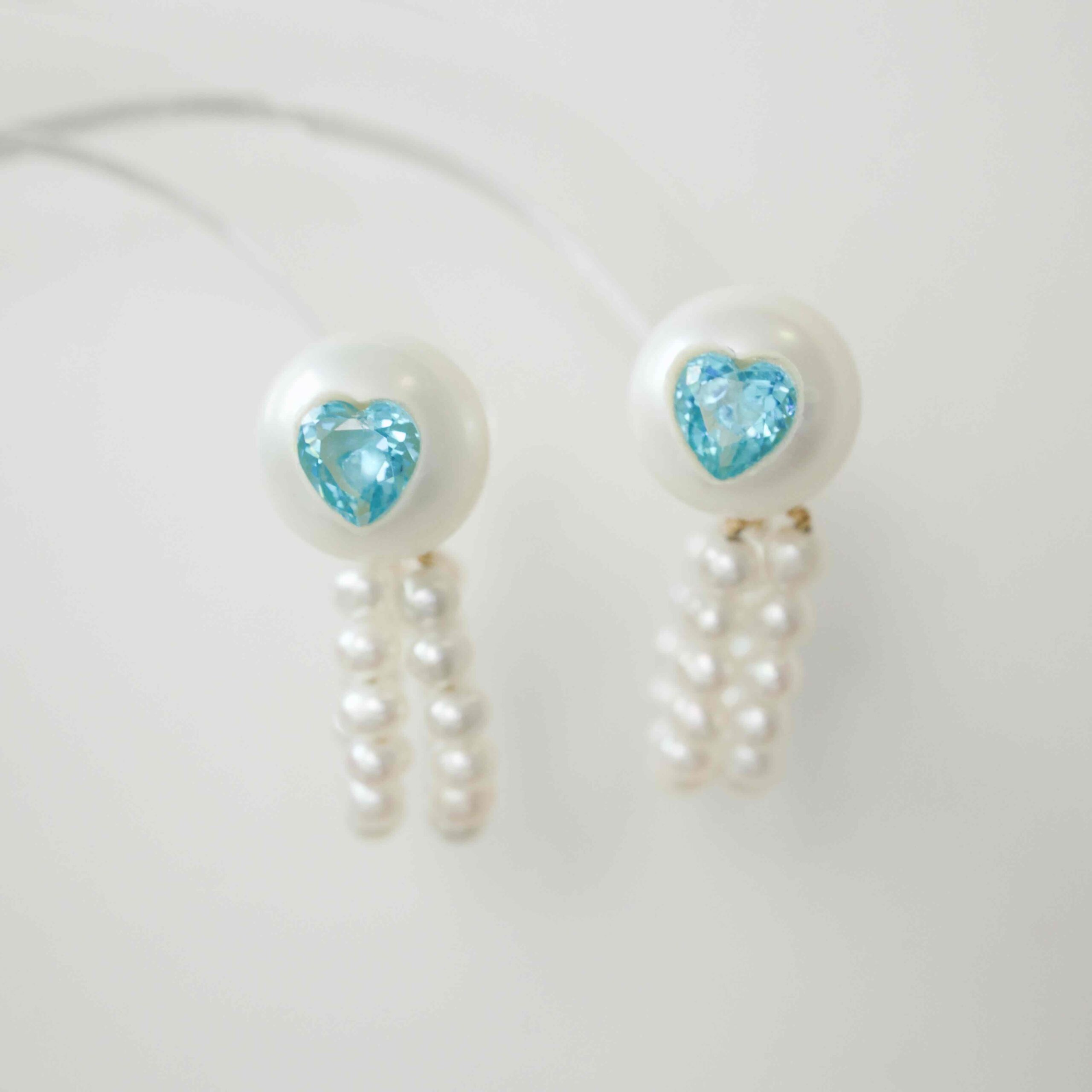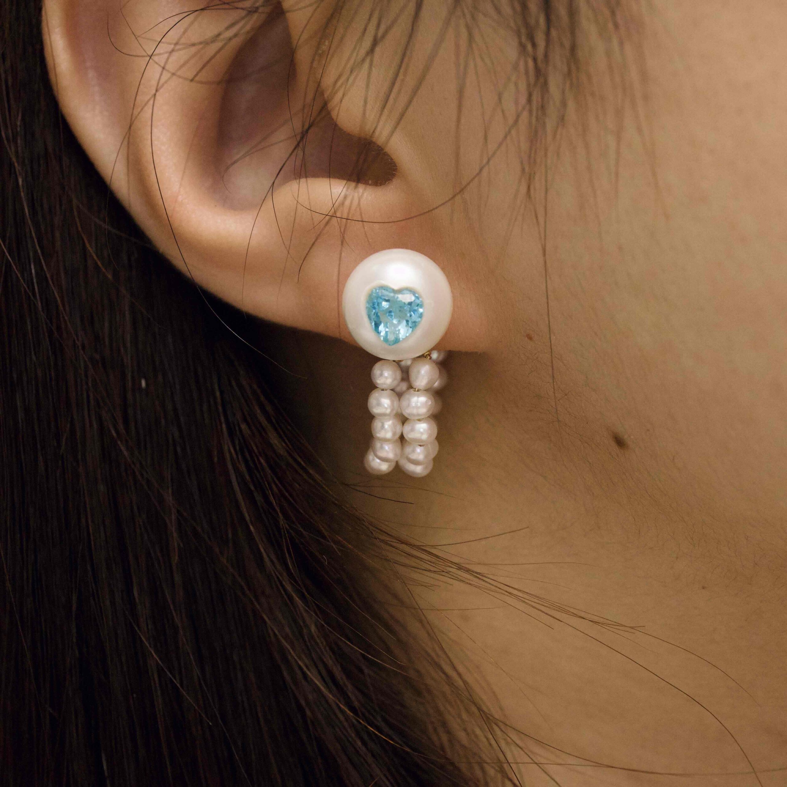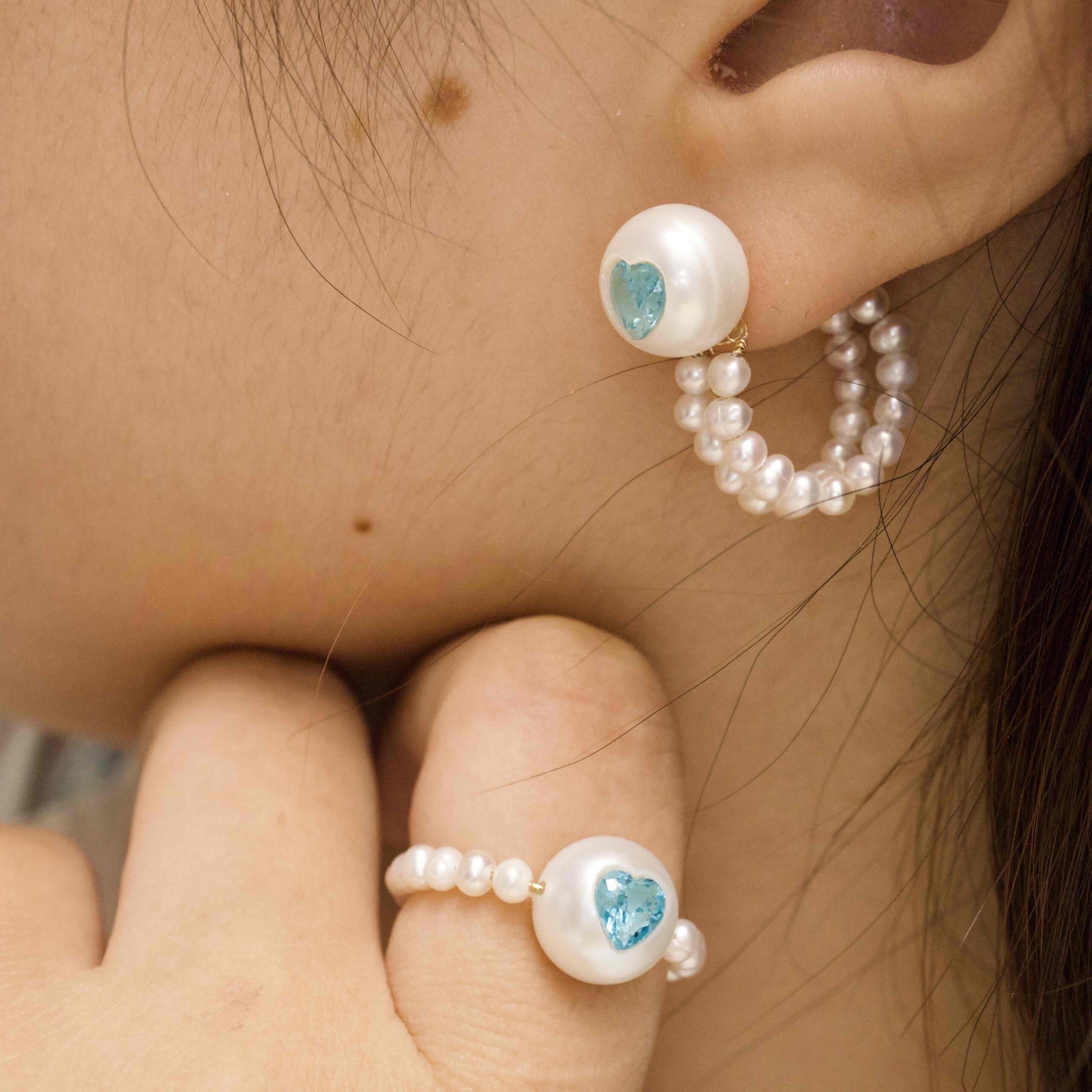 These handcrafted earrings feature a lustrous 10mm natural freshwater pearl, hand-set with a dazzling 5A-grade heart-shaped zircon (customize your color!) and framed by two delicate circles of tiny pearls for a sweet, sophisticated look. Designed to shine even in low light, they add a playful, elegant glow to any outfit. Perfect for your daily dose of charm!